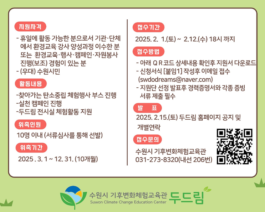 (2) 2025년 수원시 기후변화체험교육관 기후행동 지원단 모집