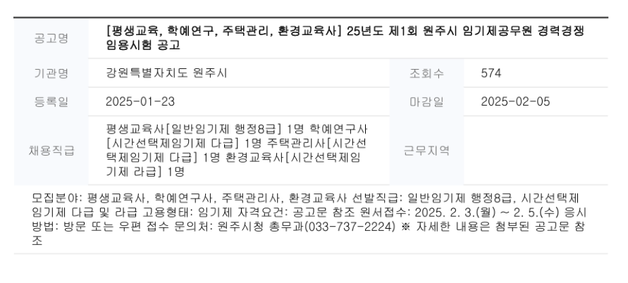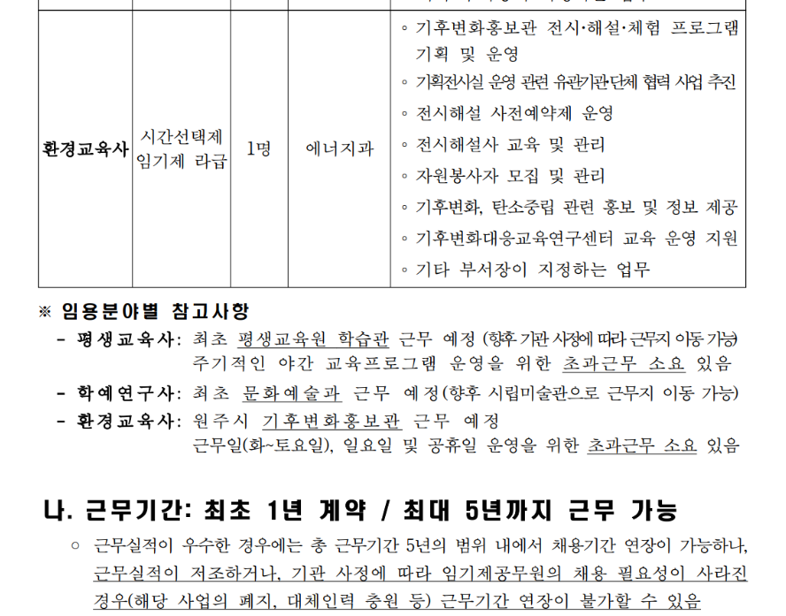 (1) 원주 환경교육사 임기제공무원 채용공고